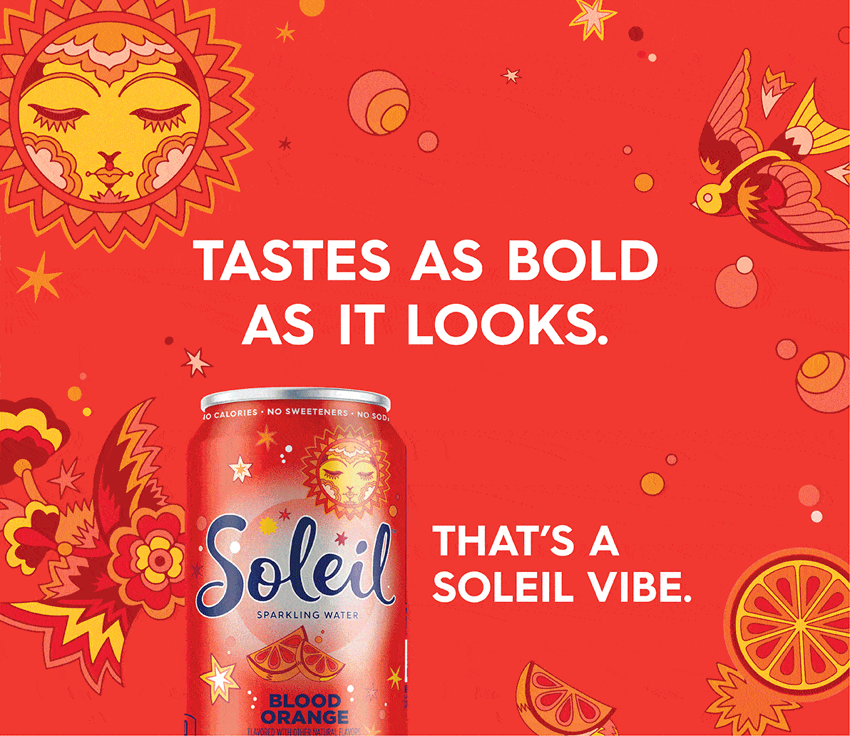 Now, you can get your fizz on without the buzz in three new non-alcoholic sparkling water flavors inspired by your favorite cocktails: Ginger Mule, Mint Mojito and Lime Margarita Soleil Non-Alcoholic Sparkling Waters. Crafted with delicious flavor and refreshing bubbles. Thrill all your senses with our exclusive Soleil Sparkling Water and get the full multi-sensorial experience by listening to our Good Vibes Playlist on Spotify.