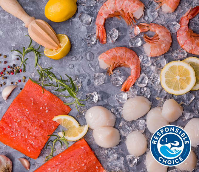 Through our Responsible Seafood Program, we are working to improve transparency within our seafood supply chain; to protect the oceans; and to provide fair and equitable treatment for the people who depend on them for their livelihoods. 100% of our Waterfront Bistro® and Open Nature® seafood products meet our Responsible Seafood Policy, meaning it was raised or caught in ways that help safeguard future supplies and keep ecosystems thriving. Look for our Responsible Choice logo to identify fresh and frozen seafood and canned tuna products that are sourced sustainably. Learn more.